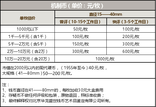 紙幣評(píng)級(jí)價(jià)格與機(jī)制幣(15-40毫米)價(jià)格一致